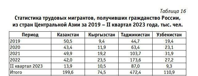 Нагуглил со ссылкой на данные МВД. Но похоже твои данные точнее. Бьются с таблице ниже. Таблица из: Интеграционные процессы в Евразийском экономическом союзе: социально-демографические аспекты. К 10-летию ЕАЭС» [научный доклад]. ФНИСЦ РАН, 2025) -