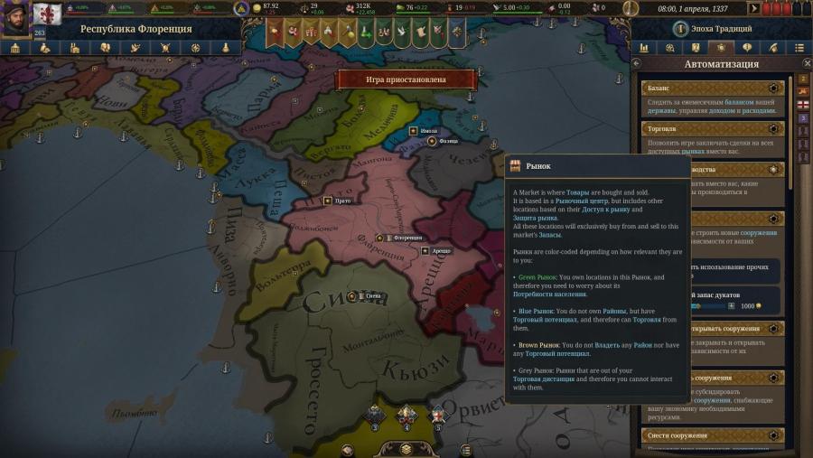 Окей, поиграл 5 часов за Византию. Впечатления. - Музыка невероятно унылая и играет с огромными перерывами. Непонятно, баг это, или просто треков мало. Но даже те что слышал... оно вроде бы и неплохое, но слишком тихое и незаметное даже для категории эмбиент. Честно говоря, напоминает ситуацию с СК3 где они слишком увлеклись системой звукового погружения, из-за чего запоминающихся саундтреков прям кот наплакал. - Как я и боялся, интерфейс навоз. Перегруженный, переусложненный, абсолютно не поясняющий куда и как кликать. - Тоже самое с обучалкой. Как обычно, Шведы сделали обучение которое тебе ничего не поясняет и не говорит что и как правильно делать. Есть неплохой гайдбук, но простите, если для понимания мне он на 100% нужен, то это плохое обучение. - Возникло стойкое чувство что боевая система очень сильно деграднула, но возможно это из-за особенностей эпохи. - Слишком огромное количество механик, многие из которых нужны только затем чтобы игроку жилось тяжело. И, опять же, вроде бы они есть, но как работают - хз. - На удивление, игра не имеет того обилия провинций что я хотел. Я хочу сказать, специализированные моды на карту для ЕУ4 добавляли куда больше провок и детализации. Кстати, в этом также проблема - карта симпатичная, но не слишком детализированная как графически, так и в плане сражений. Насчет партии. Сел за Византию и 10 игровых лет пытался балансировать налоги. Так как игра не дает тебе снимать сливки с сословий, начал детать чеканку монет и сбор денег с гражданских. Чеканка начала приводить к инфляции, гражданские к бунтам, поэтому вскоре я перестал. Так и не понял как работает новая система казус белли - эти гребанные ютуберы говорили что все через парламент, но созвав парламент я не увидел опции попросить претензии на соседей. Затем начался эвент с гражданской войной и отношения с сословиями пошли вниз. Несмотря на это, я смог в союзе с Валахией влететь в их войну с Болгарией и отпилить себе побережье, а потом выпилил Аргос. Потом я понял что сейчас будет ЧС а у меня долги и враждебные сословия и 100% развитие граданки (но она так и не выпала) и я дропнул партию. Опять же, дело не в том что мне нужен гайд. Скорее я просто не понимаю как и что работает. Дофига переусложненностей. Играть не слишком весело. И да, я понимаю что вы скажите: "нафига ты полез за сложную страну на старте". Ну, во-первых, Византия в ЕУ5 не умирающая нация, она просто сложная. На мой взгляд на карте есть государства которые находятся в большей заднице. А во-вторых, непонимая механик я обречен проваливаться за любую игру, будь то Византия или какая-нибудь Венгрия. Дело не в том что я слился потому что проиграл. Дело в том что я слился, потому что не понял а как и что. -