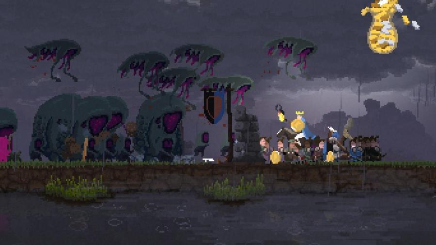 #конкурс Здравия друзья. Итак! "Kingdom Classic" - пиксельный сайд-скроллер выживач в некоем фэнтезийном королевстве. Эта игра с непрямым управлением, то есть, игрок не управляет напрямую человечками, а, лишь может их направлять на те или иные задачи, путём закупки инструментов, оружия и постройки зданий. Все же действия жители делают сами в зависимости от их специализации. Игрок играет за короля (или королеву), который, разумеется, управляет королевством. Забот у него много. И замок отстроить, и стены поставить, а, потом и укрепить, хозяйство сельское наладить и... И всё бы ничего, да повадилась в королевство Жадность. Каждую ночь посылает она своих слуг в набег на королевство через порталы. Само королевство Жадности не нужно, но, золото, которое жители зарабатывают с большим трудом - вот что нужно Жадности. Но, самая желанная цель Жадности - золотая корона короля. Потому, в набегах своих, всеми силами слуги Жадности пытаются добраться до короля и забрать его корону. А, как известно, нет короны - нет и королевства. Но, самые жёсткие испытания для королевства приходят в Ночь Кровавой Луны. Именно тогда Жадность присылает самых грозных монстров. Огромные, невероятной силы великаны, против которых и стены не укроют. Да и рыцари даже не всегда могут с ними справится. Корона короля их не интересует, их основная цель - поддержка мелких мностров. Они проносится по королевству, как ураган, сея повсюду хаос и разрушения. Великаны эти могут бесчинствовать до рассвета, после чего исчезают, но за ночь они способны разрушить пол-королевства, да и людей извести немало. Также, в Ночь Кровавой Луны иногда приходят летающие твари. Этим монстрам не нужны золото и корона. Но, они могут скидывать лучников с башен, похищать крестьян и воинов. Они не такие большие, как великаны, но дел натворить способны немало. Строить своё королевство игрок начинает с самого начала, а именно, с пустого лагеря, где нет ни замка, ни стен, ни вообще каких-либо построек, только костёр (будущий замок) да небольшое количество золотых монет. Ах да, ещё у короля с самого начала игры есть верный конь, который и до нужного места домчит, и от погони врагов спасёт (кстати, в окрестностях можно найти коня и получше). Правда, надо учитывать, что лошадь при быстрой езде устаёт и тогда, она будет идти шагом и галопом не пойдёт, пока не отдохнёт, для этого достаточно немного постоять, проехать некоторое расстояние шагом или дать лошади пощипать траву. Особенно, это важно учитывать при выезде за пределы поселения, в лес например. Потому, как, если в лесу случится убегать от монстров, усталая лошадь может стать причиной проигрыша. Однако, если монстров в погони немного, а наличие достаточного количества золота позволяет, то, можно откупиться от монстров, сбрасывая по пути по одной монете. Монстры будут их поднимать и довольные уходить обратно в портал. А тем временем, конь отдохнёт и можно снова галопом доехать до поселения. Как только король разбивает лагерь, игрок может нанять несколько бродяг, которые с радостью станут жителями будущего королевства за один золотой. Впоследствии, королю придётся совершать поездки в лес, там можно найти лагеря бродяг, где их можно будет нанимать. Бродяги в лагерях появляются каждый день по одному, но, в лагере может быть не более двух бродяг. По сути, лагерь бродяг - это бесконечный 