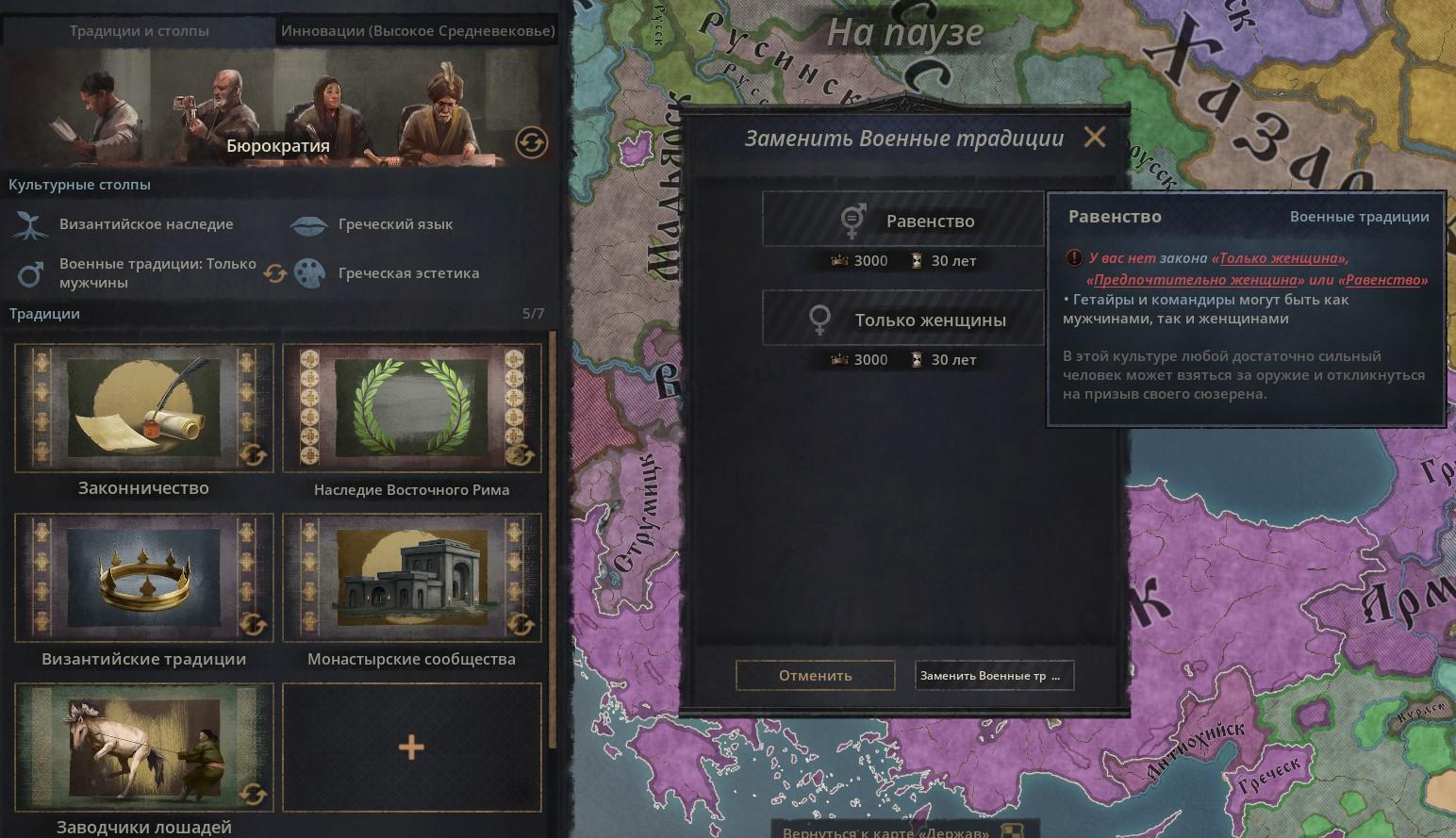 Вот я хочу развести равенство в тихой-патриархальной Византии. Лезу в культуру что бы разрешить дамам воевать наравне с мужчинами. Но не тут то было.
