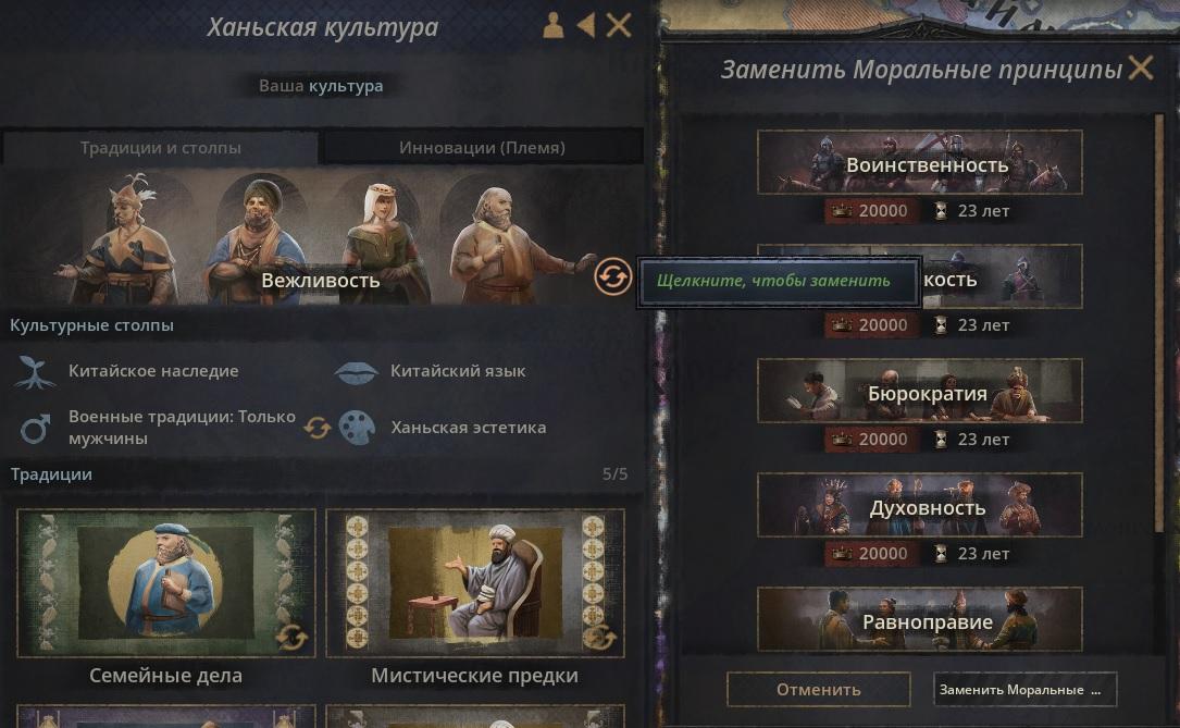 Войдите или зарегистрируйтесь, чтобы увидеть скрытое содержимое.  +30% Повышение эффективности культурного принятия 24px-Task_develop_county.png +0,2 Ежемесячная разработка в Realm Capital 24px-Icon_gold.png +10% Вассальный налоговый взнос