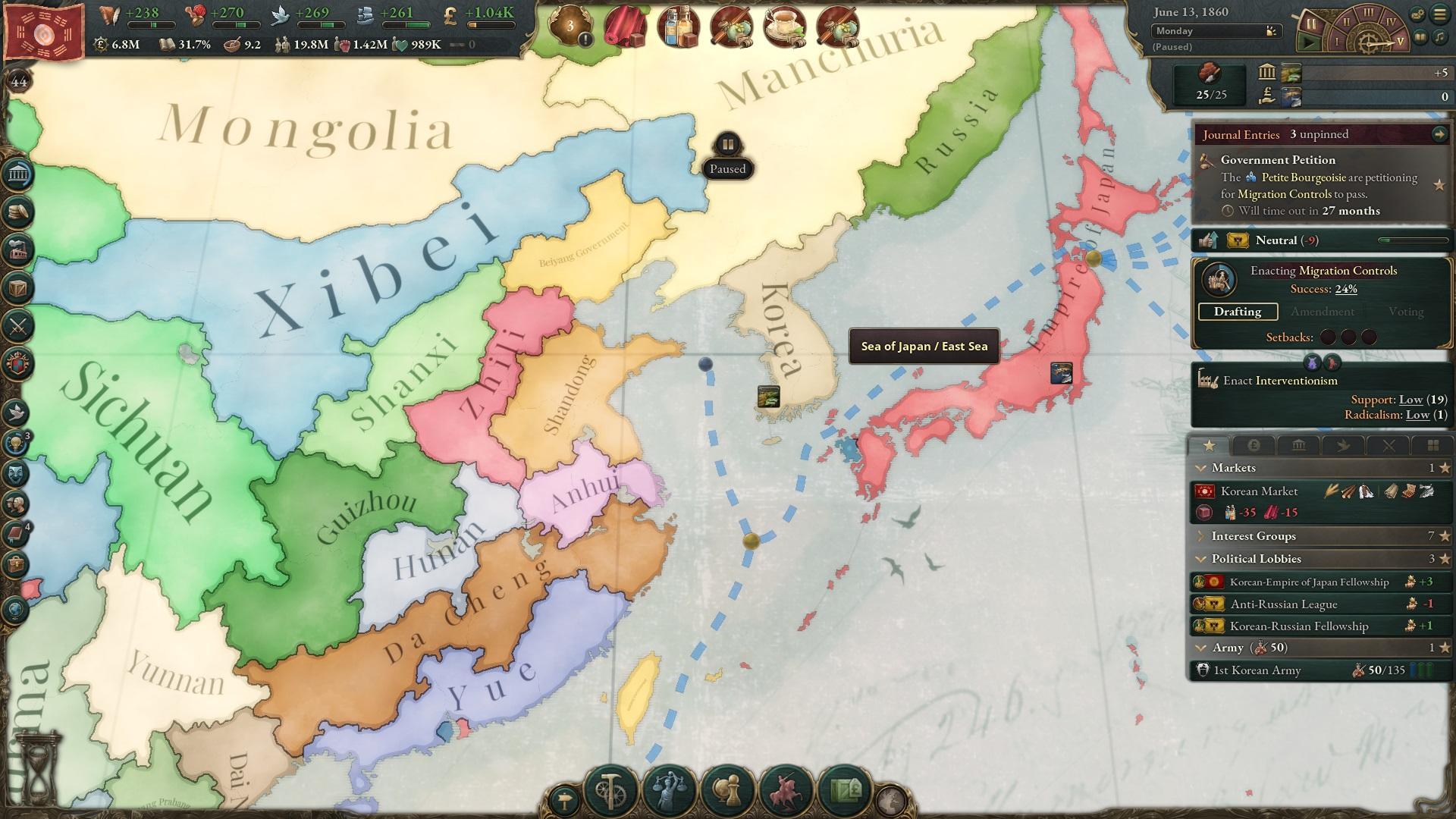 Корее не нужен рынок сюзерена - у нее есть все свои ресурсы для строительства, а без красителей как-то уж проживет. На старте это типа маленькая версия Китая - 16 миллионов неграмотных немытых крес