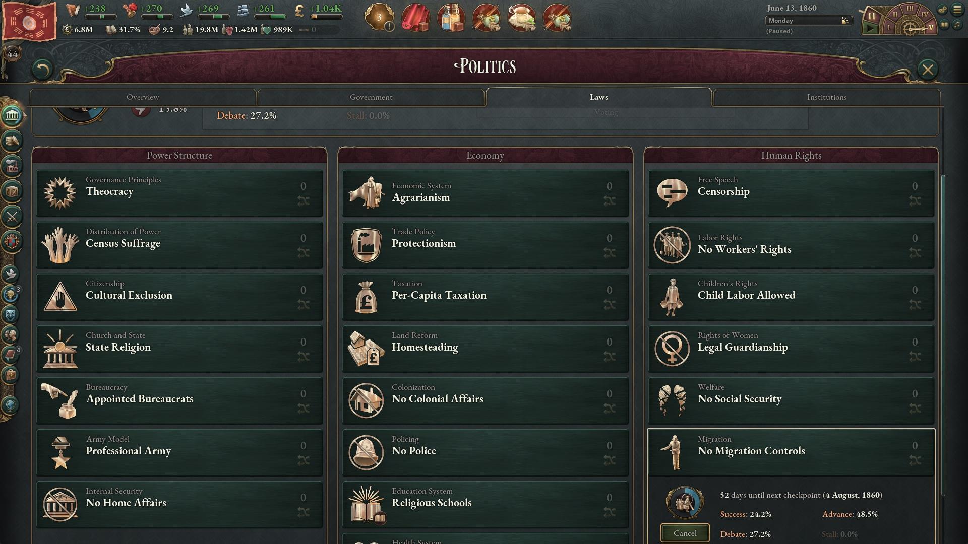 С двух игр нарисовал для себя оптимальную схему начала игры. Максимальные налоги и разрешение на приватизацию вообще всего в стране со старта - важна каждая копейка. В Янсо есть железная шахта -