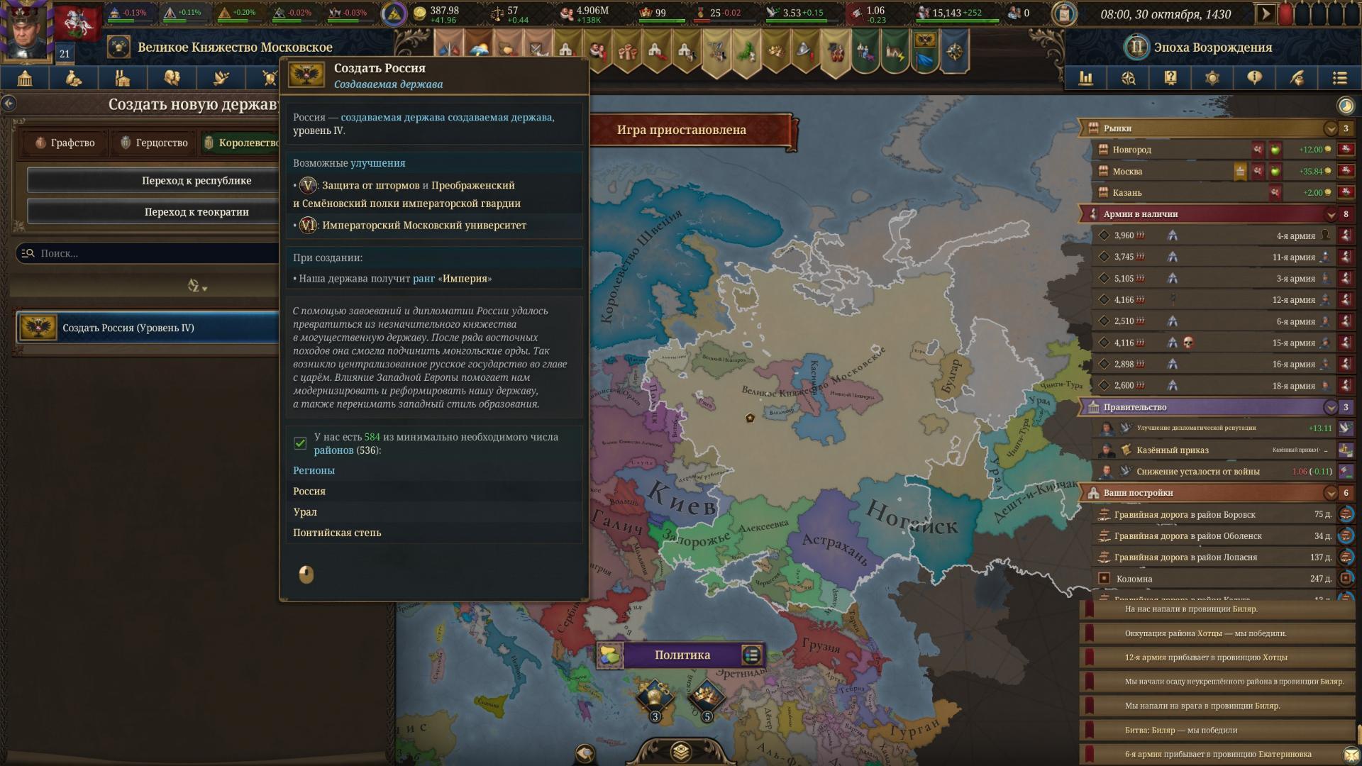 Я отыграл 80 лет и у меня начались вьетнамские флэшбеки про третью Хойку. Сел на Византию, и играть не то, чтобы сложно — я без особого труда вырулил ее со всеми ее шизанутыми дебафами на железно