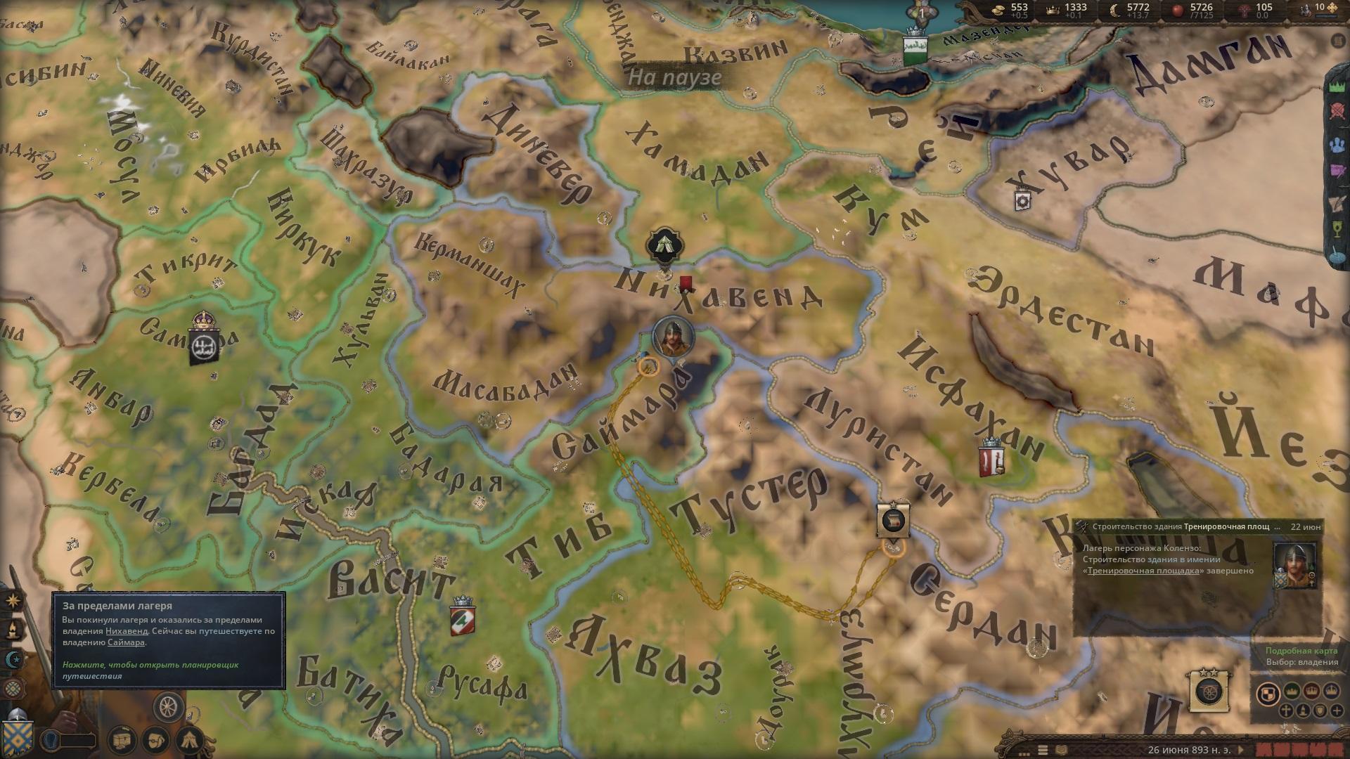 Также отмечу, что довольно часто после боя возникает баг – персонаж не возвращается в лагерь, а лагерь невозможно перенести, так как пишет, что персонаж в путешествии. Для решения проблемы вам нужно отправить персонажа в какое-нибудь путешествие, например через решение «на рынок шелкового пути» или к какому-нибудь контракту. Сразу после начала путешествия нажмите на значок путешествия (колесо) в нижней левой части экрана и нажмите кнопку «домой».