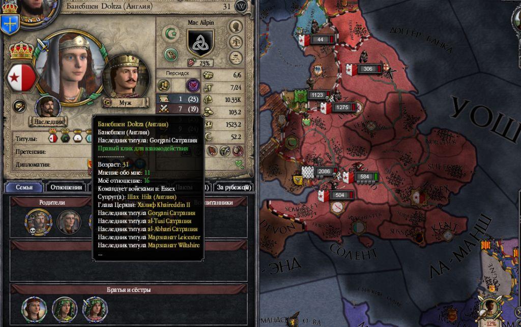А Англия? Ах, какие страсти. Игра престолов в разгаре. Все саманиды-сафариды, которых я вытурил из Персии своими зороастрийцами - теперь сосредоточились вокруг её величества Английской королевы и насмерть грызутся с прежним кланов евреев.