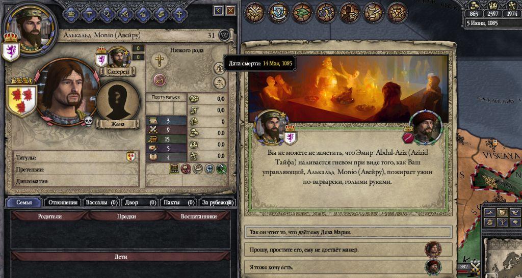 У меня неделю назад был забавный случай. Выбор из серии: вера или жена? Женился я на византийской принцессе, симпатичная девушка, а трейты просто закачаешься. В общем король Синей Капли из династии Но