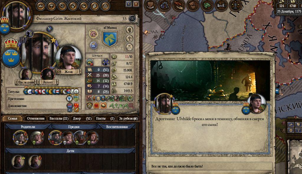 Родилось демоническое дитя. Пока взрослело, парочку своих сиблингов ушатало, ну да не об этом речь. Совершеннолетие, смотрю статы - интрига 33 (все остальные тоже дойстойные, естественно). Ок, хватаю её (это была дочь), ставлю тайным советником и в столицу раскрывать заговоры. И через полгода её в тихом переулке зарезали по заговору из 2 человек, во главе заговора - придворная с интригой 7. А я даже не могу эту тварьпаскуду в тюрячку упечь - республика, мать её, и "повода нет". Конец сказки...