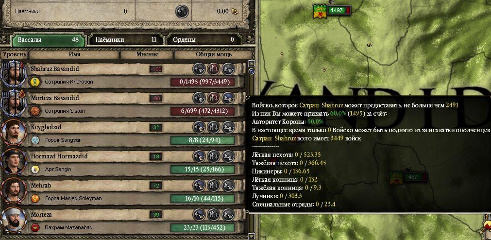 Ваша армия может состоять из нескольких разновидностей войск: ополчение домена, вассальное ополчение, ваша свита, наемники, священные ордена и временные войска. Рассмотрим детально каждую из них.