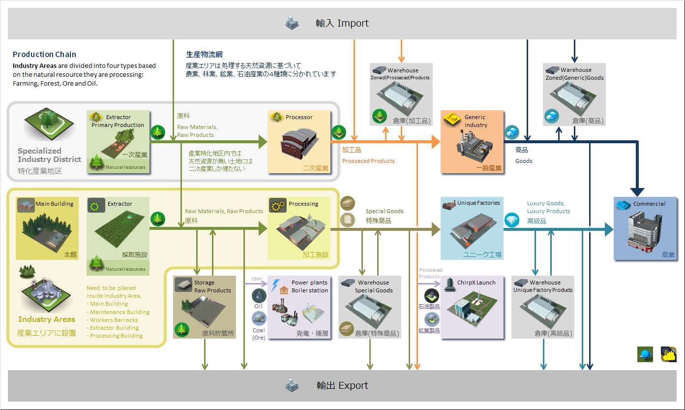 Где-то на Reddit по этому вопросу нашел во такую интересную схему. Там же все пишут что старые и новые зоны можно отлично сочетать. Я сам после выхода индастриз тоже сначала перестал старые зоны делать. Сейчас понимаю что со старыми разнообразие будет больше как визуально так и по цеполчкам. НО по цепочкам тут конечно надо все опытным путем выяснять "в бою".