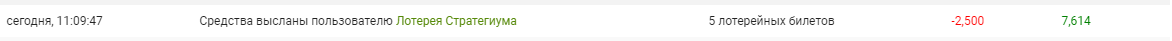 В последний день продажи билетов первого тиража платной лотереи выигрышный фонд достиг 42904 вир (вопрос возврата 96 вир, взысканных в виде налога на богатство решается с Председателем Банка Стратегиум @alexis), то есть за вычетом 1500 вир "утешительных" выплат второму и третьему призерам, вся остальная сумма достанется единственному победителю.