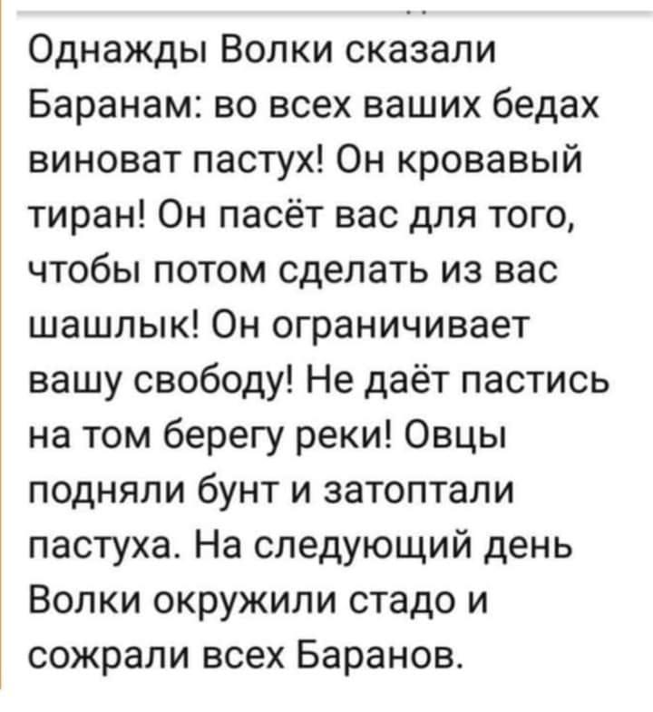 Поучительная история. Именно овцами вы людей и считаете, и того не скрываете. Так вы не обобщайте на всех, стадное вы наше. Скотами вам всех не сделать.
