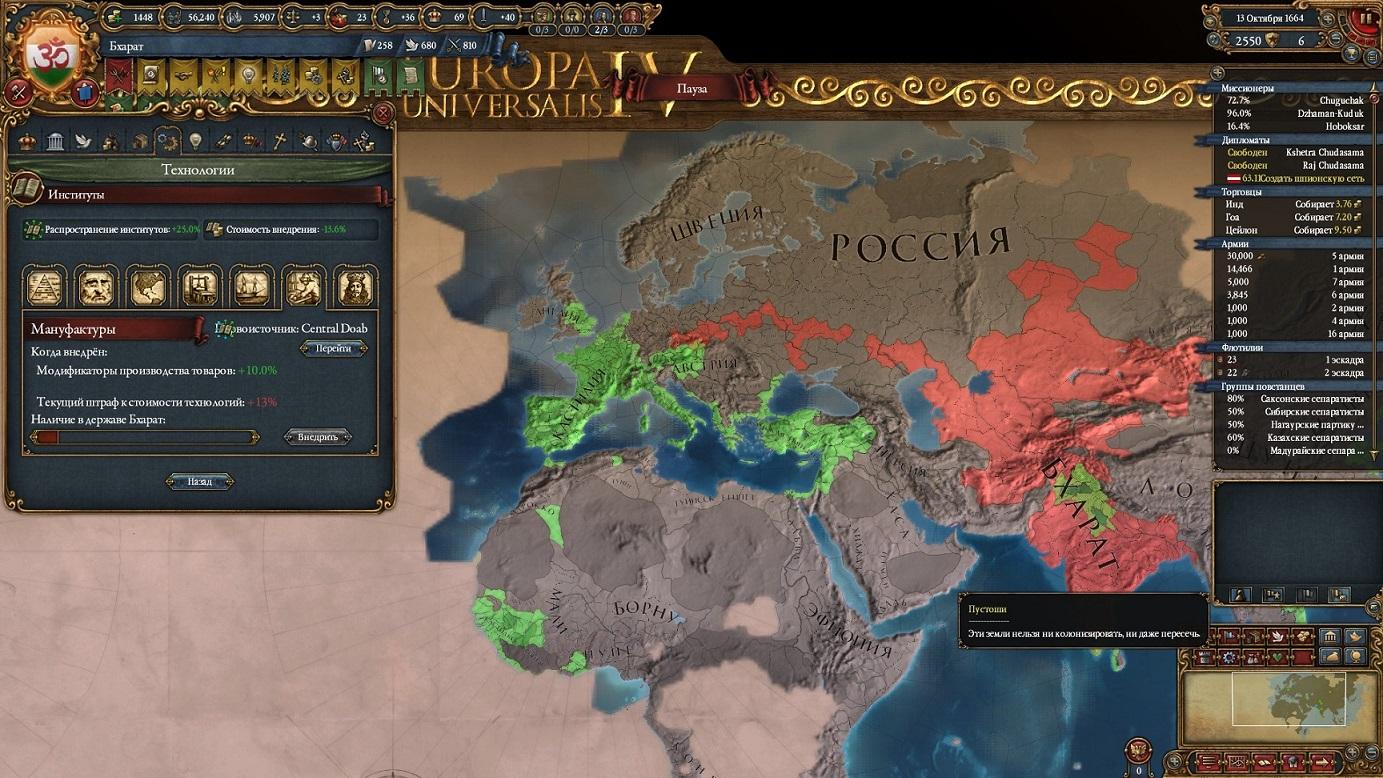 Всем доброго времени суток. Думал что уже разобрался с механикой институтов но, видимо, игра решила надо мной подшутить. Все институты принимались нормально, но когда дошло до глобал трейд то процесс застопорился. Сейчас этот институт уже есть по всему миру, даже у отсталых государств Азии и Америки. Но в моих провинциях его обещают только в следующем столетии. Чем это может быть вызвано?