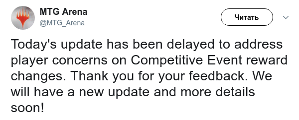 Как обычный простой нуб, только начавший играть в MTG Arena, скажу, что в случае изменения системы наград в бо1 констрактеде, для меня являющемся основным источником пополнения коллекции, я скорее всего просто перестану играть в эту игру, т. к. картон и колоды собираются ужасно долго, по ощущениям даже ХС гораздо дружелюбнее в этом отношении.