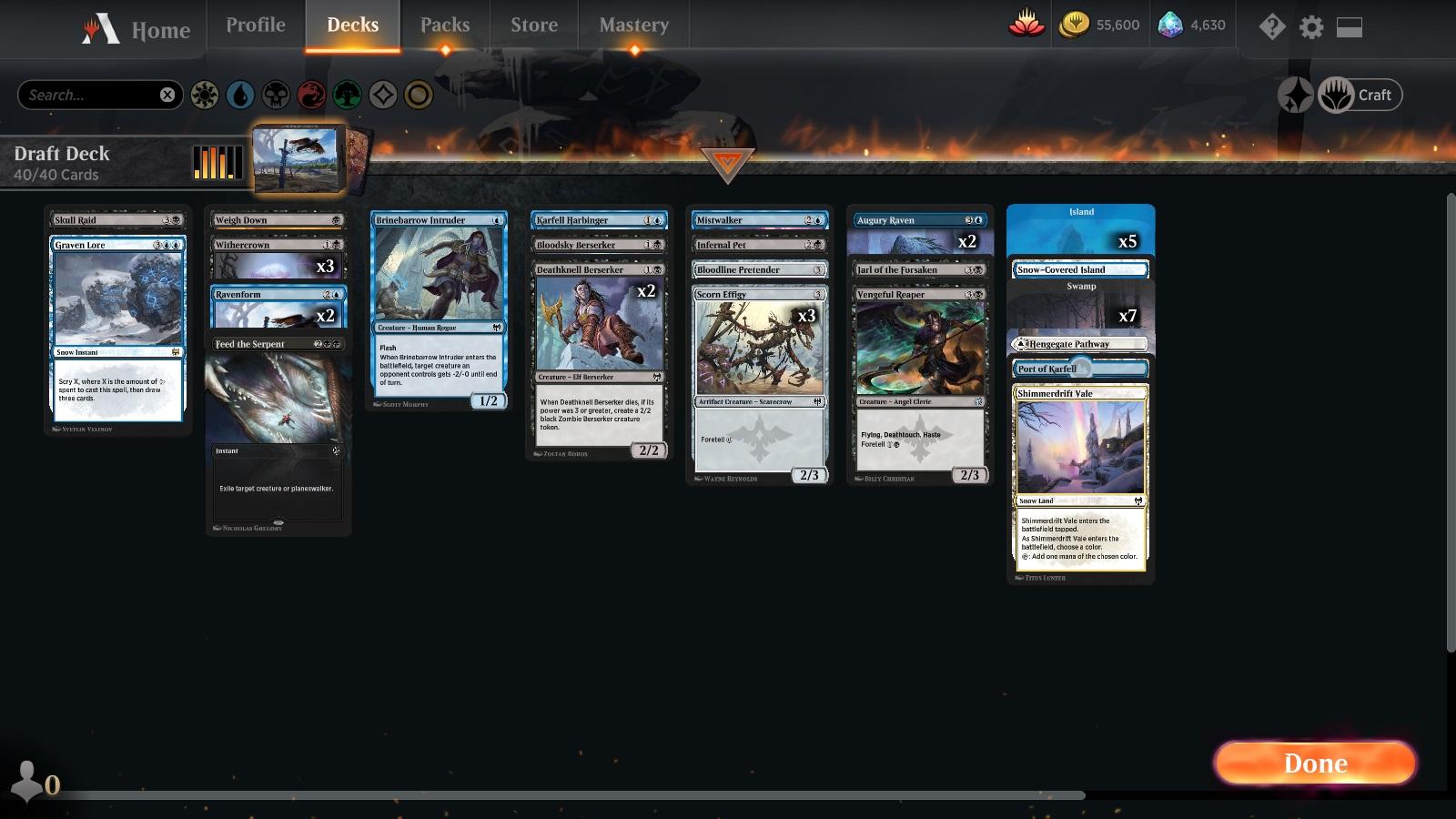 Позже изучил сет более подробно и имею сказать следующее - сет выглядит довольно странным. У нас есть целая куча архетипов(намного больше 10) и по 2-3 карты на поддержку каждого архетипа - трайблы в каждом сочетании цветов, какие-то другие синергии, все это сверху припорошено снегом и обмазано форетолдом. Что со всем этим делать - не очень понятно. Тем не менее, на данном этапе я скорее хочу играть красным. Белый видится исключительно вспомогательным цветом во всякх боросах-дворфах с оржов-ангелами или как поддержка какой-то крутой белой карты редкого или мифического уровня. Ну и если совсем тухлый пак - берите снежную землю, даже если она не в цвет.