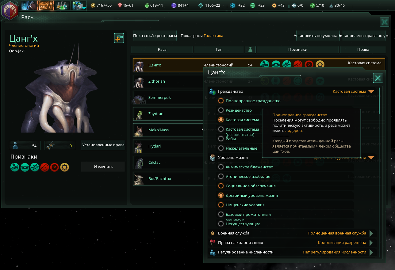 При авторитаризме невозможно родной расе выдать полные права (при наведении почему-то крестик стоит на условии, что она главная). Баг или фича?