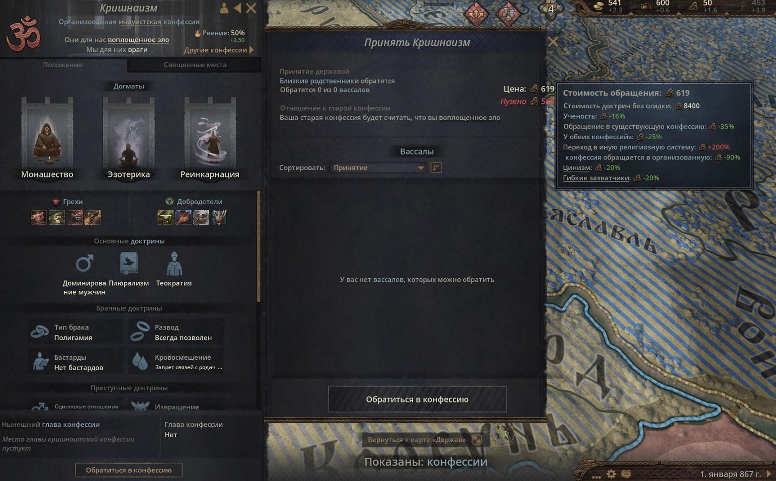 Хм, у меня тогда возникает вопрос. Не так давно я играл за Русь и там были какие то конские цифры для перекрещивания по благочестию + как я понимаю, влиял дипломатический радиус. Могу ошибаться. Такая низкая цена связана с какими то недавними изменениями в игре или так было всегда? Потому что я бы не задавал этот вопрос, если бы все было так просто. С другой стороны, если все теперь так просто, то и вопрос отпадает.